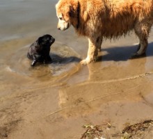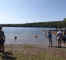 At 6:30 am, Pixel and I packed up the car and headed to Lakewood, PA to attend Goldstock Camp. My little black pug in a sea of golden retrievers.